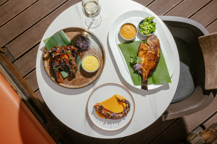 主菜同樣精彩,素食人士可選擇香烤椰菜花搭配秘魯辣椒醬、香草醬和蕃茄粟米莎莎,口感清新豐富,是健康輕盈的午餐之選;或選擇香辣烤雞,皮脆肉嫩的雞肉配紫薯條,滋味無窮。海鮮愛好者絕對不能錯過每日新鮮送到的時令鮮魚和以明火烤熟的香烤八爪魚(另加HK$78),搭配燒烤醬汁及柚子蕃薯泥,啖啖滋味。