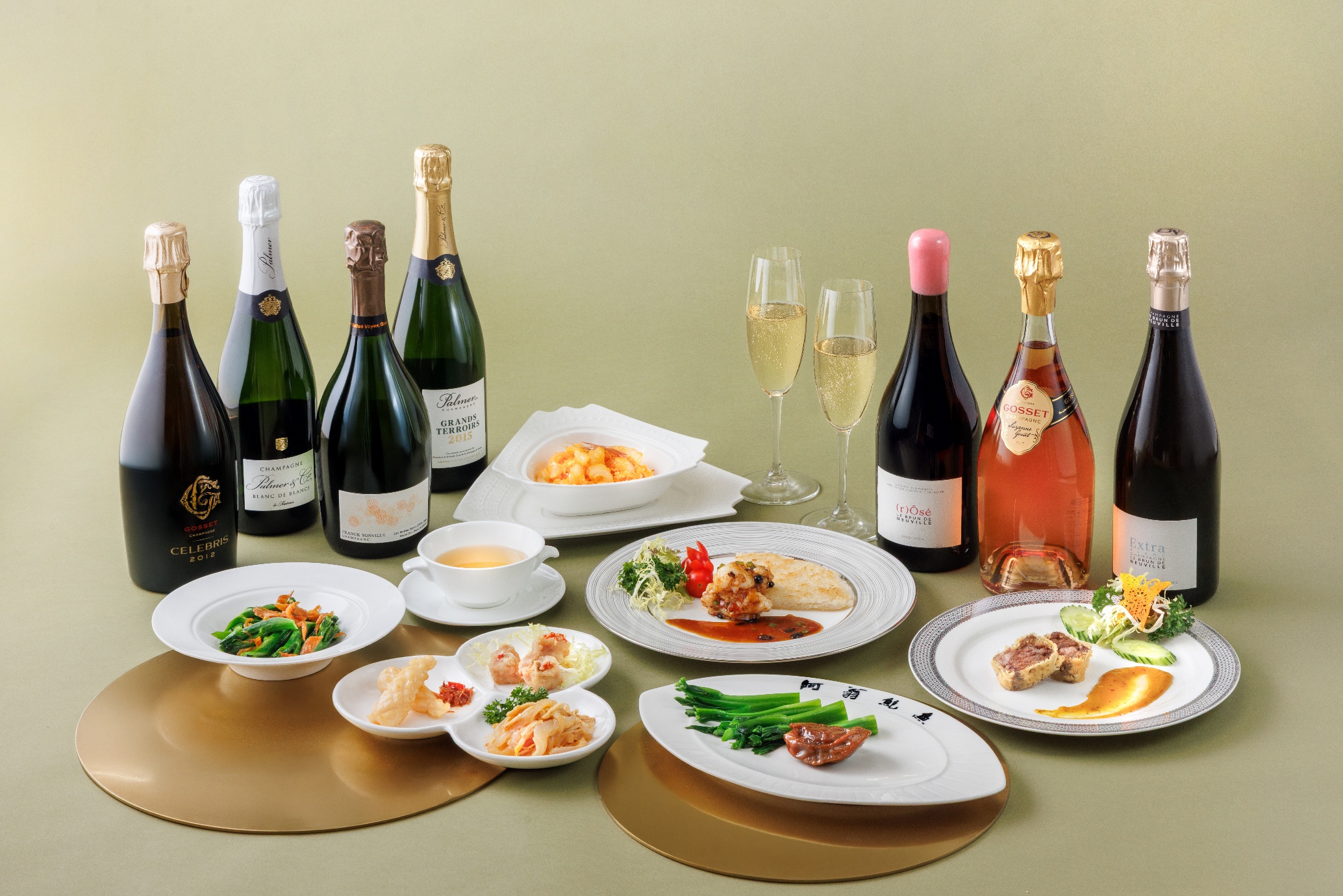 晚宴將以 Franck Bonville「Unisson」Grand Cru Blanc de Blancs 作為迎賓香檳拉開序幕,其柔順口感為晚宴奠定歡愉基調。隨後奉上的餐前小食匯聚了油泡生曬吊片的鹹香底蘊、海蜇涼辦手撕雞的清爽醒胃,以及椒鹽金沙排骨的酥脆惹味。