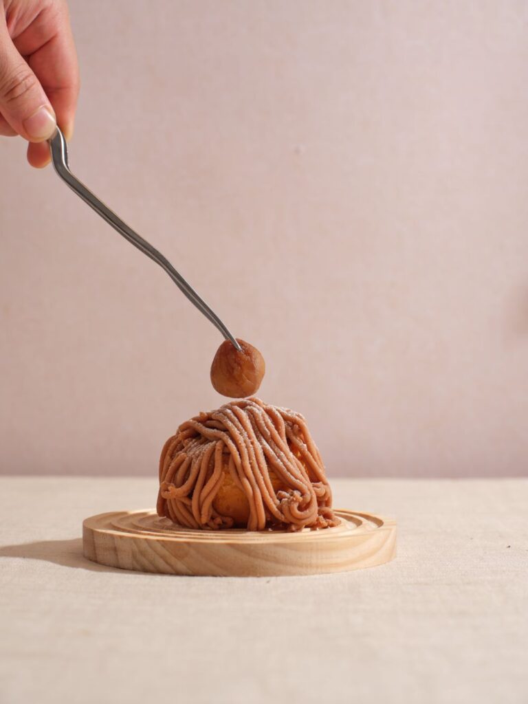 栗子蒙布朗丹麥酥,頂部以糖漬日本栗子作點綴,經傳統糖煮工藝帶來濕潤綿密的口感,散發日式栗子獨有的淡雅甜香,每一口都充滿秋冬氣息。