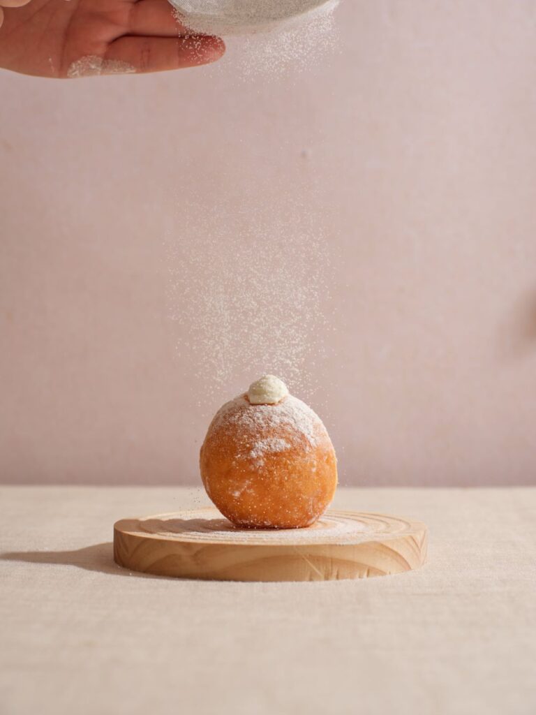 迷你生忌廉冬甩,師傅嚴選蛋味香濃的日本蘭王蛋,為麵團注入飽滿色澤與風味;內餡則採用北海道產忌廉,乳脂含量高達45%,奶香濃郁醇厚。
