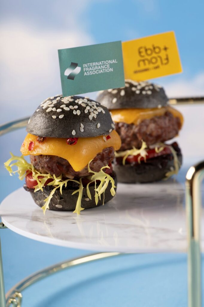 精心設計的餐單提供一系列精緻的鹹甜佳餚,包括清爽開胃的柑橘果汁浸漬帶子、香煎鴨肝配意式拖鞋麵包多士及粉紅胡椒脆皮和牛漢堡。甜點方面以優雅花香的香水作靈感,包括有佛手柑茉莉花意式奶凍、荳蒄柑桔果凍、翠玉蘋果及橙花吉士撻、玫瑰抹茶慕絲和柑橘瑪鞭草英式鬆餅伴奶油及果醬。最後,配上一杯芳香撲鼻的玫瑰花水果茶為您的旅程畫上清新而精緻的完美句號。