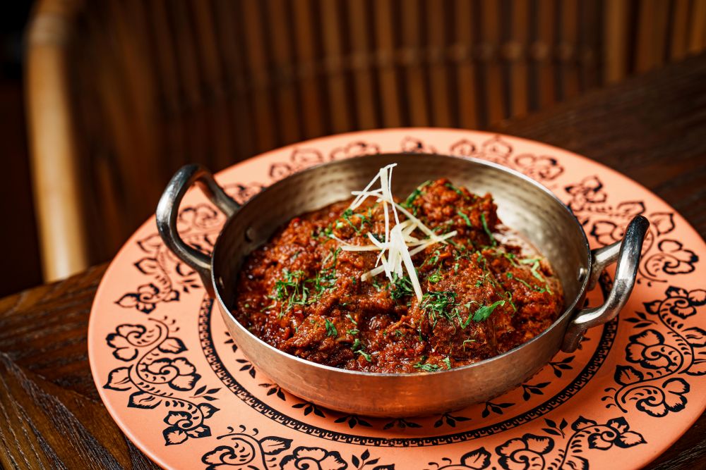 魚面頰酸辣湯 (Fish Cheek Rasam)(HK$88)-來自印度南部,酸辣適中,香氣濃鬱,風味十足。喀拉拉辣椒炒豬肉 (Kerala Pork Fry)(HK$148)-鮮嫩的豬肉配以黑胡椒碎、咖喱葉和椰子,是印度胡椒海岸的招牌菜式。