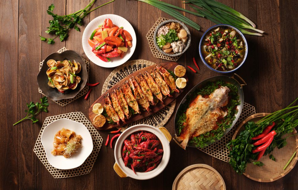 廚師團隊同時匠心炮製一系列特色熱葷海鮮菜式,如薑蔥炒龍蝦鉗、馬頭立鱗燒、紅燒花膠伴蝦籽麵、蒜蓉牛油大蝦、蒜蓉粉絲蒸扇貝、川味酸菜魚、麻辣小龍蝦、辣酒煮花螺及豉椒炒蜆等,滋味層次豐富。客人更可即點即製潮式肉碎蠔仔粥,體驗地道風味。琳瑯滿目的精選甜品包括即製雞蛋仔、焦糖布甸及多款意式雪糕,為豐盛盛宴劃上甜蜜句號。