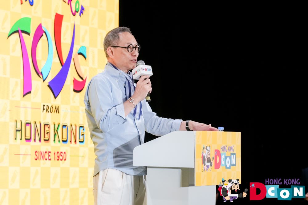 傳奇級設計師陳幼堅 (Alan)在致辭時感謝製作團隊,同時致意多位業界參與者,正是他們的共同努力,讓「香港館」得以立體呈現香港玩具的奇蹟。