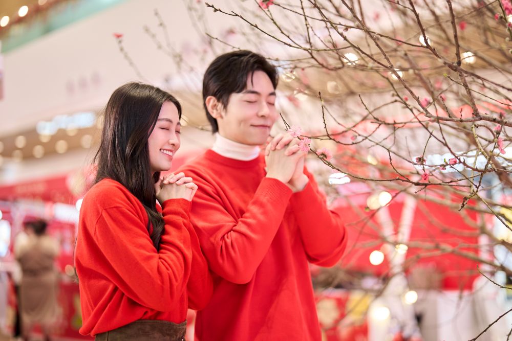 3樓中庭於市集舉行期間將設有超過4米高巨型桃花樹,誠邀各位於滿開的桃花樹下打卡,感受粉紅桃花帶來的甜蜜祝福,在2月14日情人節當日下午1時及5時更有派發玫瑰花活動。穿上「合和」二字紅色催運馬鞍的白馬,於寓意團圓與財富的湯圓及餃子、巨型開運御守、賀年三色糰子的簇擁下亦將來到中庭,祝福大家新一年萬事和合、馬到功成!